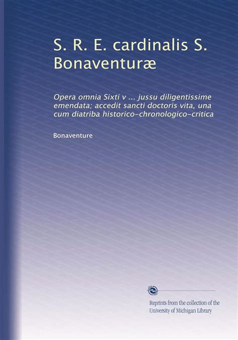 S. R. E. Cardinalis S. Bonaventur ... Opera Omnia Sixti V ... Jussu Diligentissime Emendata... PDF By Click Button. S. R. E. Cardinalis S. Bonaventur ... Opera Omnia Sixti V ... Jussu Diligentissime Emendata... it’s easy to recommend a new book category such as Novel, journal, comic, magazin, ect. You see it and you just know that the designer is also an author and understands the challenges involved with having a good book. You can easy klick for detailing book and you can read it online, even you can download it